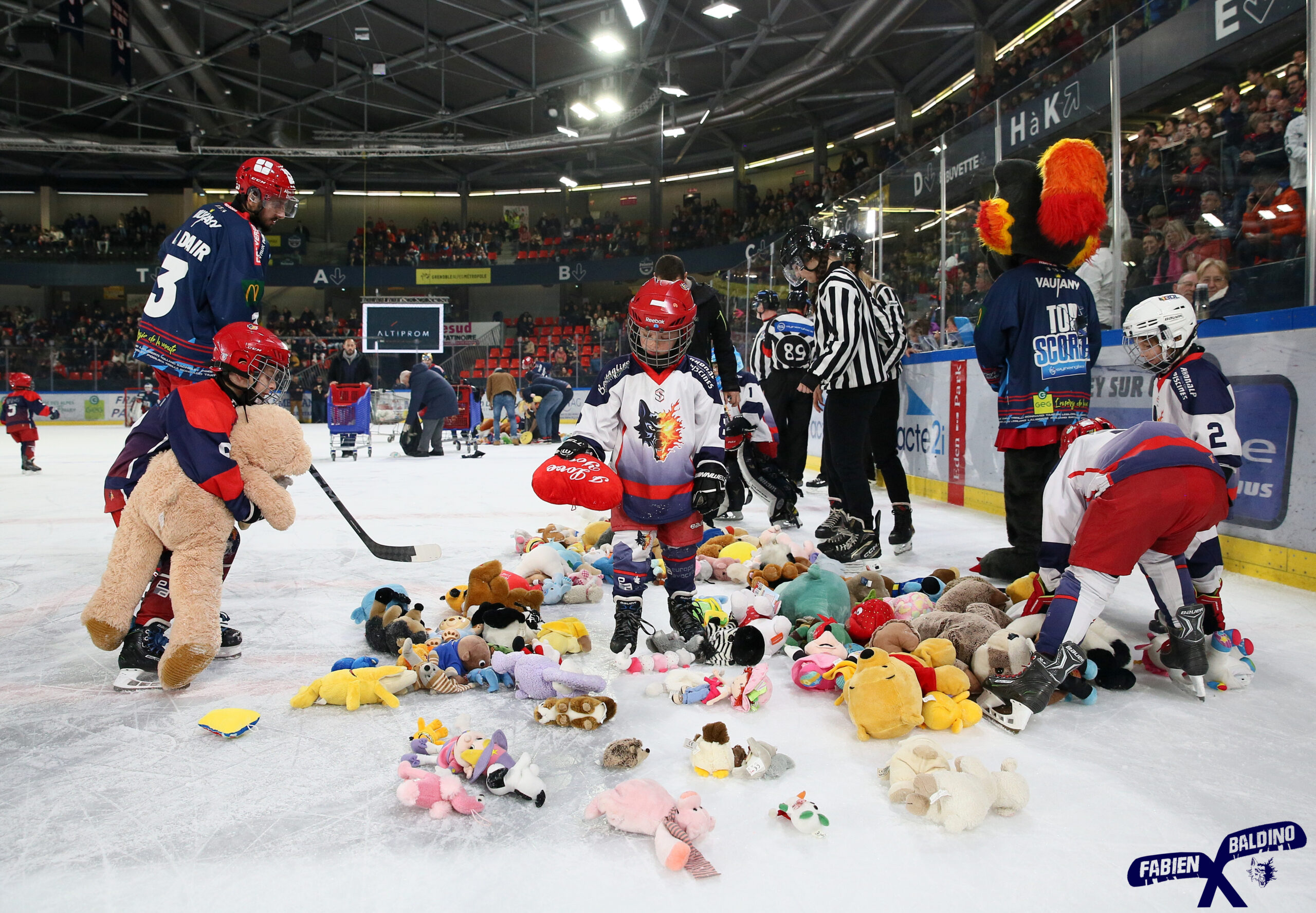 Le match spécial “lancer de peluches” en partenariat avec le Secours Populaire !