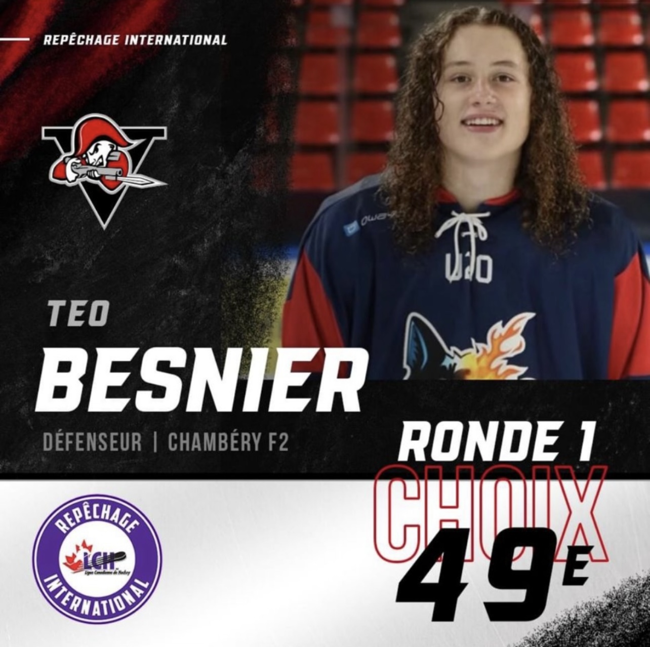 Hier, l’équipe canadienne des Voltigeurs de Drummondville a repêché Téo Besnier lors de la « 2024 CHL Import Draft »