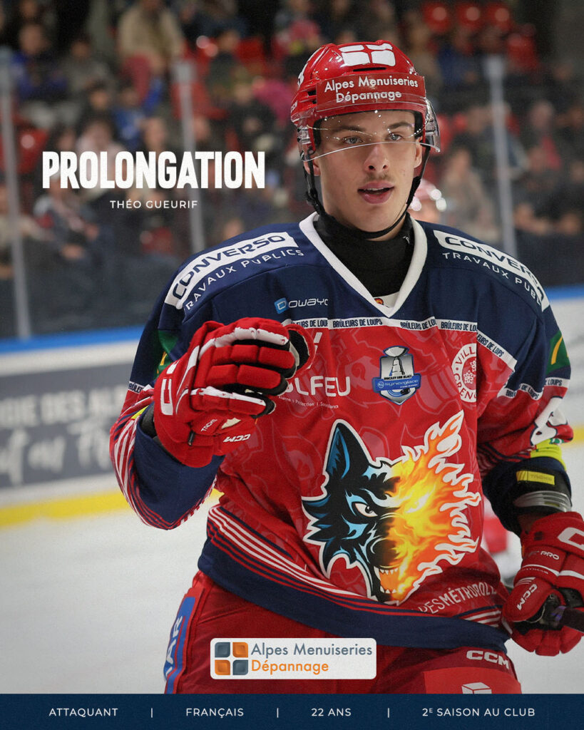 Théo Gueurif portera à nouveau les couleurs des Brûleurs de Loups pour la saison 2025-2026. Arrivé l’été dernier, l’attaquant originaire de Villard-de-Lans confirme sa place au sein de l’effectif grenoblois après une première saison convaincante.