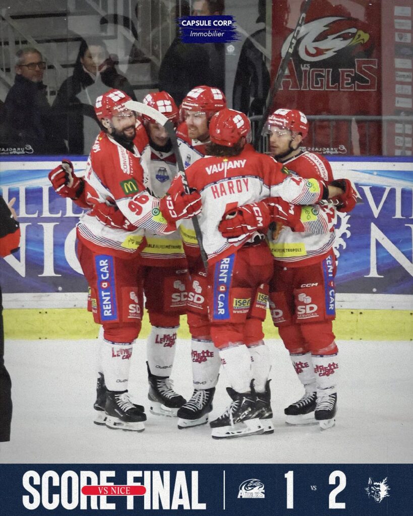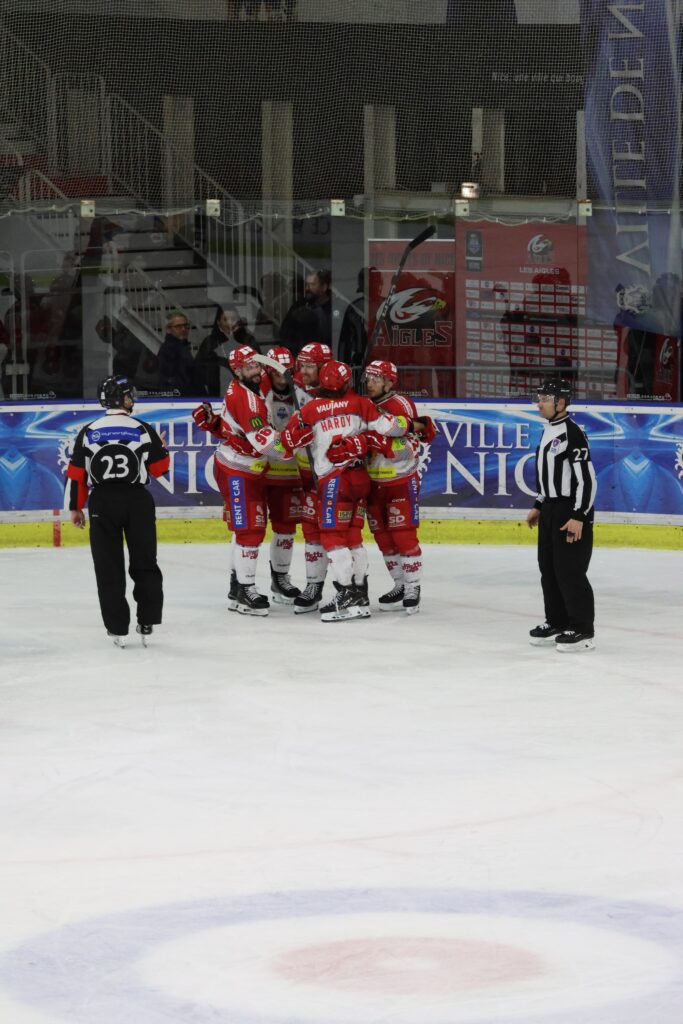 Les Aigles entrent dans cette période déterminés à profiter de leur powerplay. Même si cela ne passera pas durant cet avantage là, ils installent une dynamique offensive et font pression sur nos BDL. Ce travail se verra payant à la 27ème minute avec Luka KALAN qui va chercher l’égalité (27′ Nice 1 – 1 Grenoble). Ce retour au score des Niçois semble leur donner des ailes. Ils multiplient les actions et empêchent les Grenoblois de s’installer autour des cages de Raphaël Garnier.