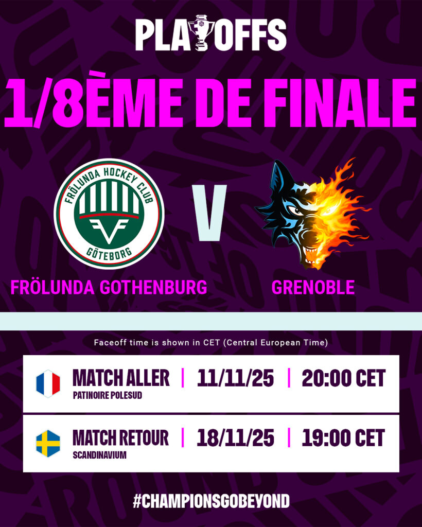 Après une qualification historique en playoffs de la Champions Hockey League, les Brûleurs de Loups seront opposés au Frölunda HC (Suède) en 1/8ème de finale !