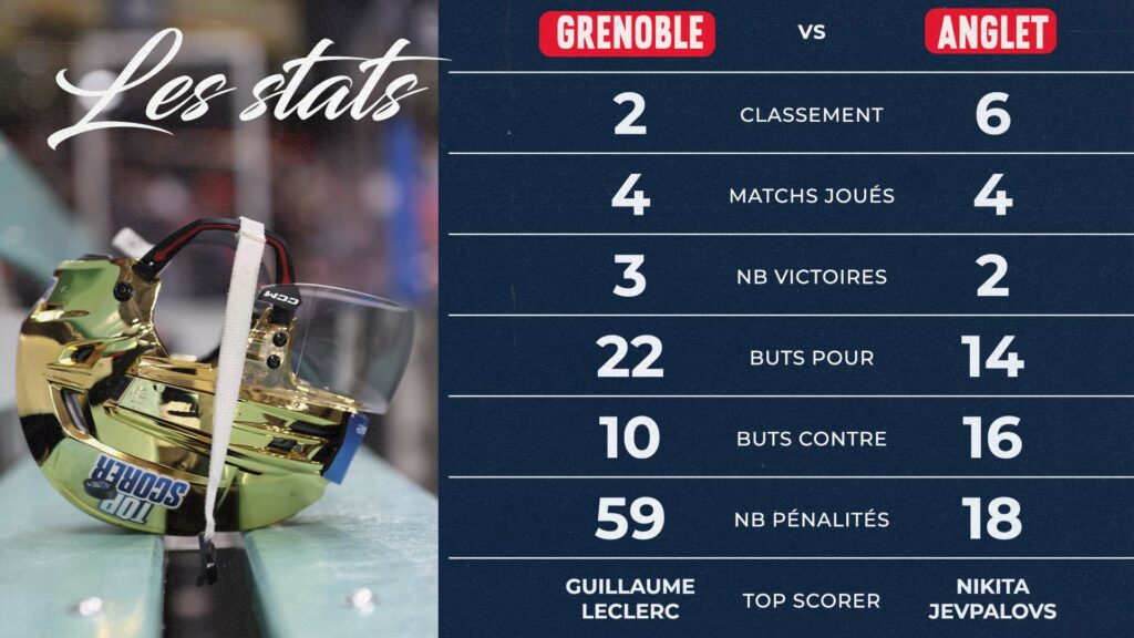 Sixièmes du classement, les Angloys ont un bilan comptable équilibré. Après deux défaites lors des deux premières journées (3-2 contre Marseille et 7-4 contre Cergy-Pontoise), les Basques ont parfaitement rebondi avec deux succès en championnat, contre Nice et Briançon, à chaque fois sur le même score de 4-3.
