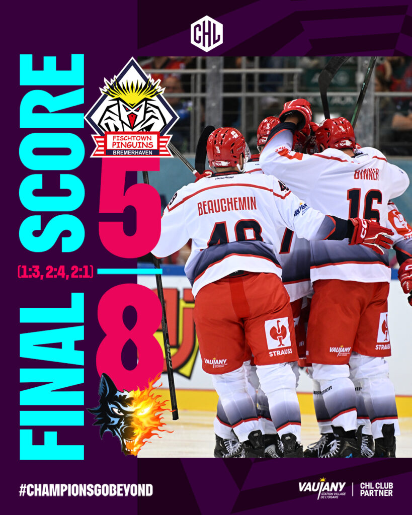 Plus rien ne sera marqué jusqu’à la fin et les Brûleurs de Loups s’imposent donc 8 buts à 5 à Bremerhaven ! Il s’agit de la première victoire du club en CHL cette saison, mais aussi la première depuis 2019 !