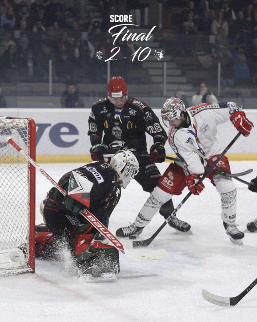 Malgré l’indiscipline de leurs adversaires et plusieurs séquences de powerplay, les BDL ne parviennent pas à concrétiser leurs supériorités numériques. C’est finalement à égalité de joueurs que Sacha Treille trouve la faille et inscrit le cinquième but grenoblois, imité quelques minutes plus tard par Axel Prissaint.