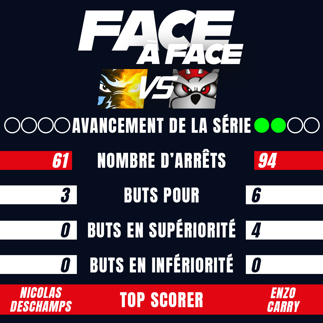 À ce jour, les Dragons et les Boxers sont à 2 victoires à 0 dans leur série.