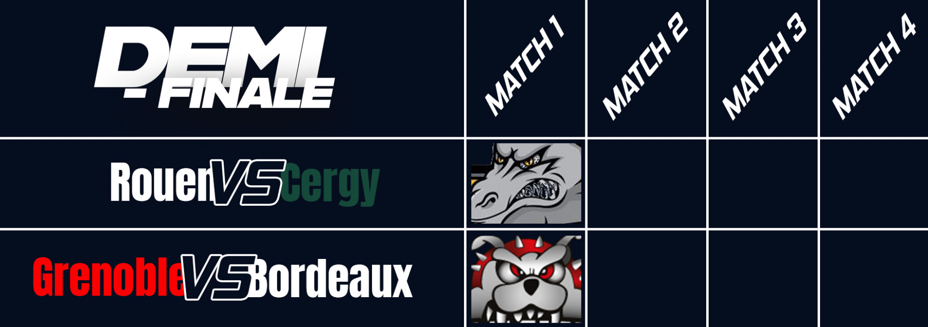À ce jour, Rouen et Bordeaux sont en tête de leur série.