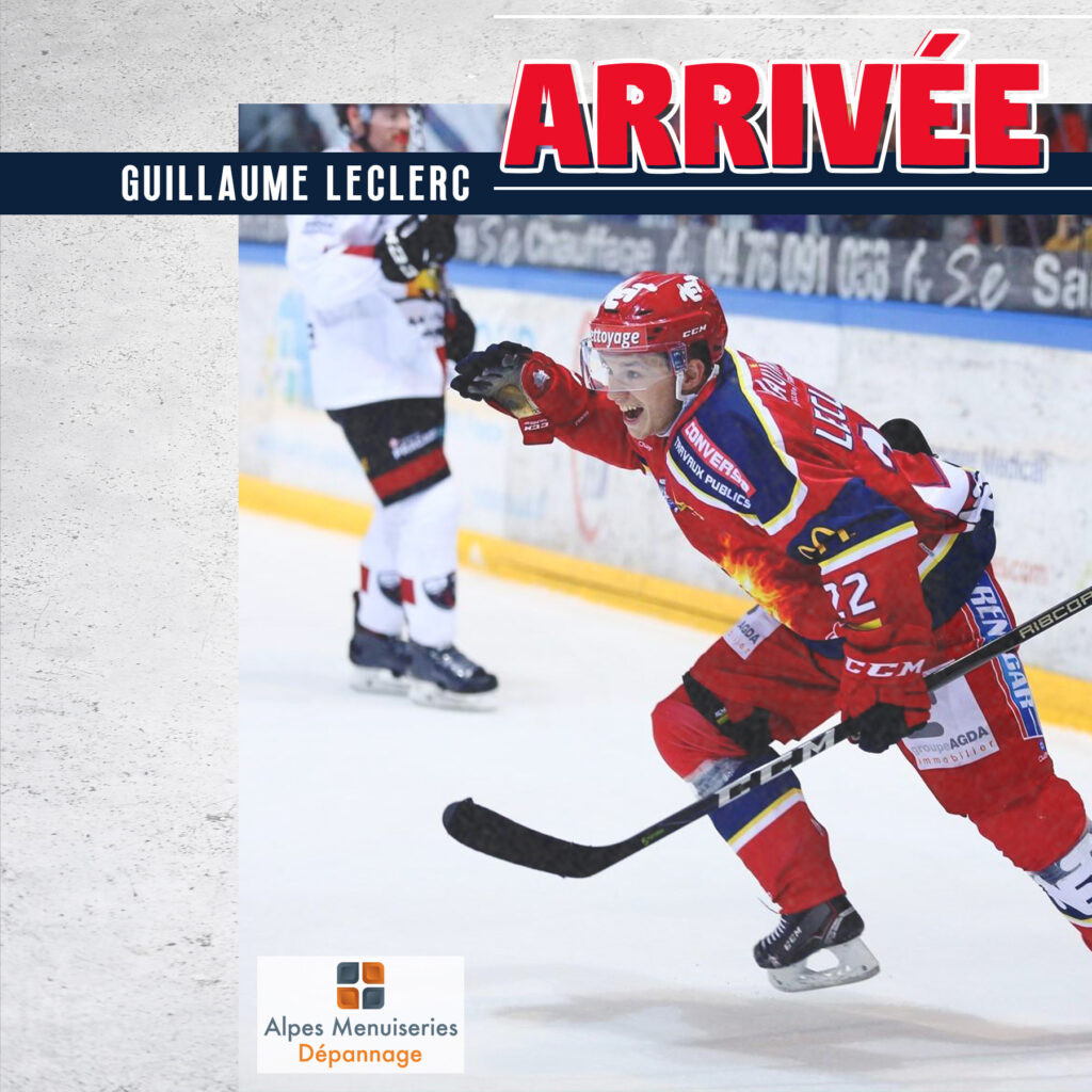 Natif de Besançon, Guillaume Leclerc fait sa formation à Amiens avant de partir aux États-Unis en NAHL, en USHL et en NCAA entre 2013 et 2018. C’est lors de cette même année qu’il revient en France, où il s’engage avec… Grenoble ! Il dispute 37 matchs en Ligue Magnus (14 buts, 14 assistances) et atteint la finale du championnat avec les BDL. La saison suivante se révèle être fabuleuse pour Guillaume puisqu’il est sacré champion de France avec les Brûleurs de Loups, mais aussi meilleur pointeur avec 61 points (29 buts, 32 assistances) en 44 matchs de Ligue Magnus et élu meilleur joueur français. Guillaume connait ensuite un parcours très européen, passant par la Slovaquie, l’Allemagne, le Danemark, la Slovénie, la Suède et dernièrement la Hongrie, où il sort de deux saisons avec le Fehérvár AV19.