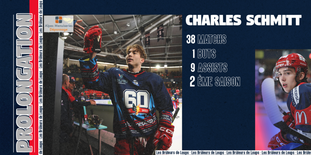 Après une saison pleine du côté d’Anglet en 2022-2023, Charles Schmitt a ensuite posé ses bagages à Grenoble avec l’objectif de progresser. Freiné par une blessure aux adducteurs en octobre dernier, le jeune défenseur de 23 ans a tout de même pris part à 37 rencontres en Synerglace Ligue Magnus et 1 en Coupe de France, pour un total d’1 but et 9 assistances.
