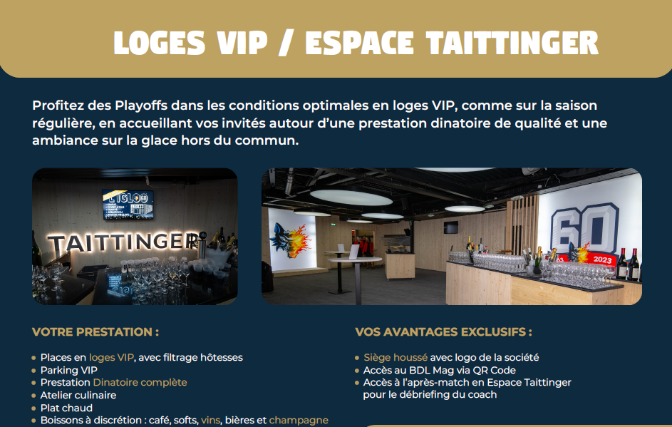 Profitez des ¼ de finale de playoffs les 28 février et 1er mars pour vivre l’expérience BDL en VIP !